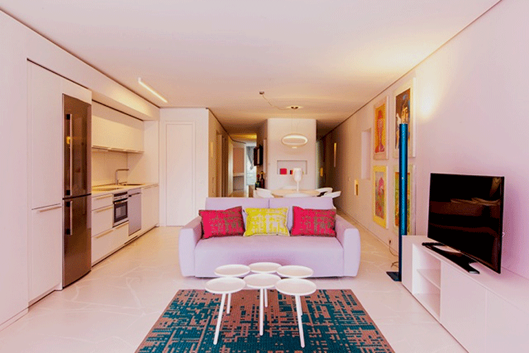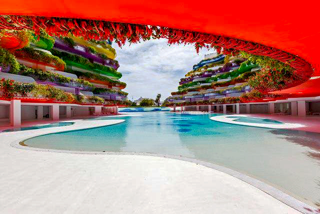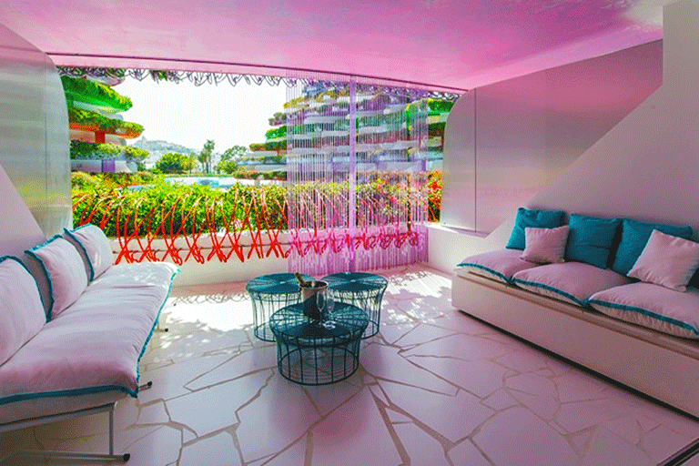 Las Boas is a truly spectacular. Designed by the famous architect Jean Nouvel, the building Is one of the most iconic buildings on the entire island and has been the choice of many celebrities over recent years, located in the best area of the Marina Botafoch. The concept offers a unique living experience with panoramic view towards the old town of Ibiza and the port. The individually finished and designed luxury apartments are unique. The building has balconies of different colors decorated with beautiful plants, what makes it really original. In its center there is a lake-size swimming pool, one of the largest swimming pools of residential use in Europe.